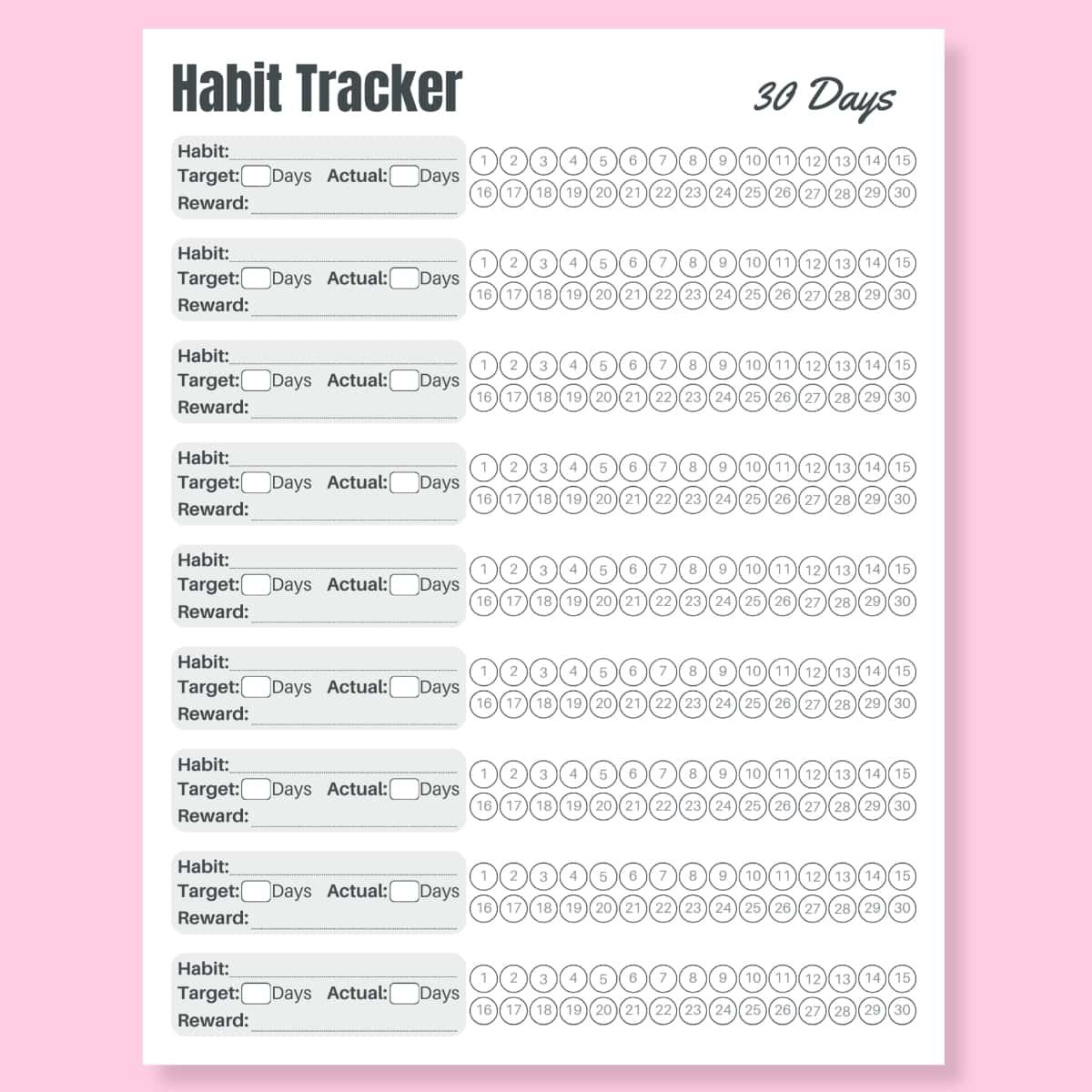 Yes, almost any! From health habits like drinking more water or exercising, to personal development like reading daily or meditating, to financial goals like tracking spending or saving, a 30-day tracker is versatile. It’s particularly effective for habits that are clear, repeatable, and require consistent daily (or near-daily) action.